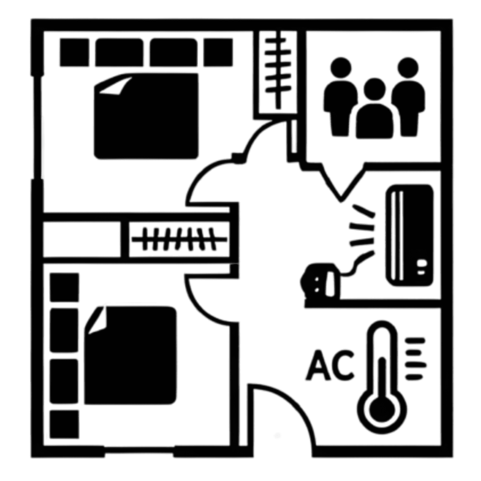 Áreas comunes y restaurantes: Vigile ocupación, ruido, calidad del aire, iluminación y detección de humo en lobbies, salones y cocinas para garantizar la seguridad y el confort de sus huéspedes.